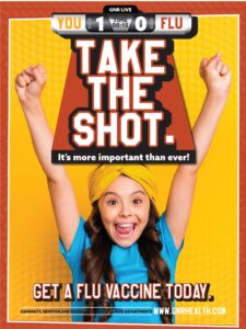 They say defense is the best offense, so score one against the flu this season by taking the shot … the flu shot. It’s more important than ever as our communities continue to work on preventing the spread of COVID-19. The flu vaccine can limit your risk of serious complications from the flu, like hospitalization or even death. The flu shot is a yearly vaccine, so even if you have had the shot before, you should get immunized every year.